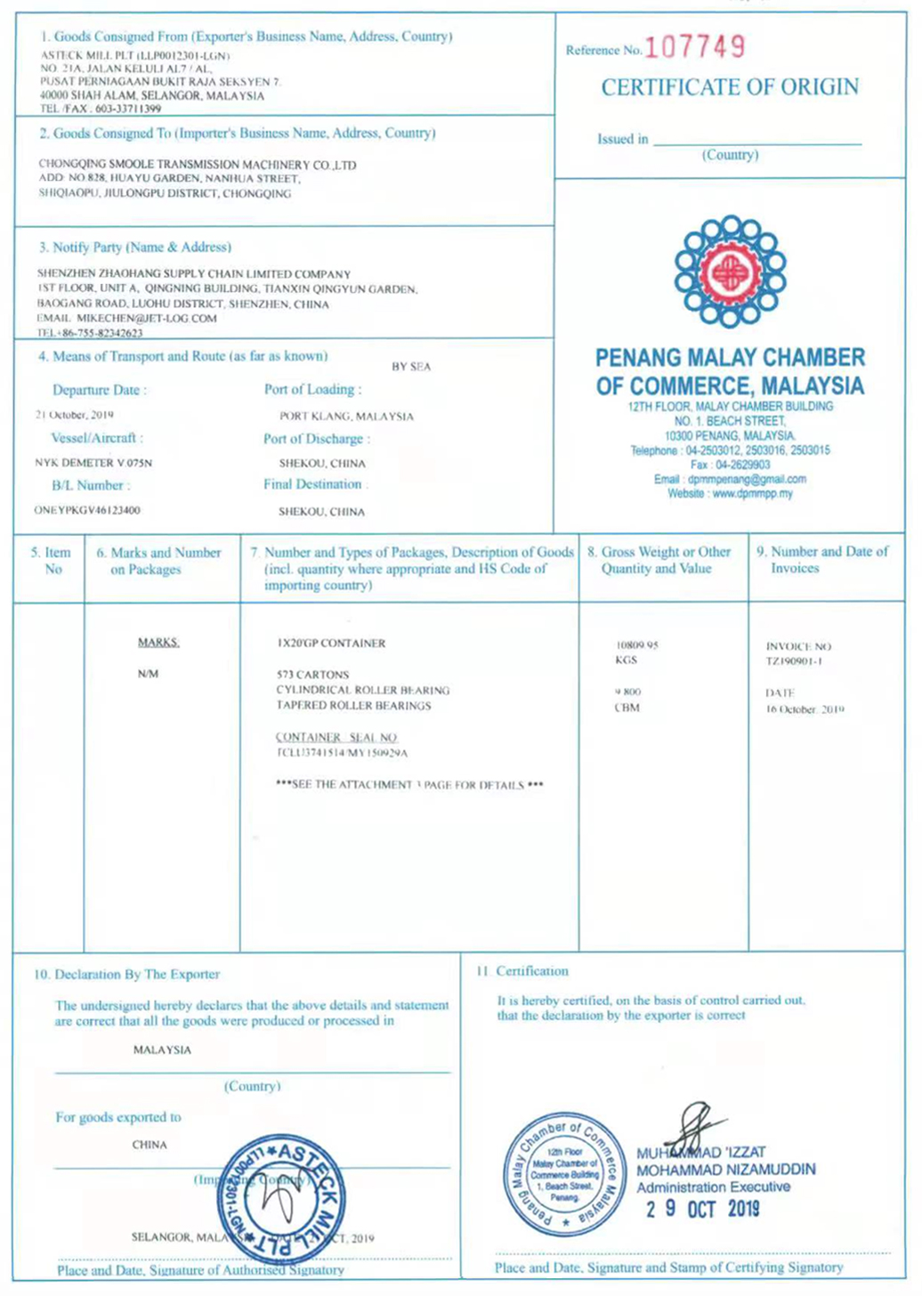 SMWIKO原產地證明